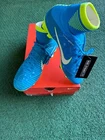 Description: Elevate your child's soccer game with these Nike Jr Mercurial Superfly V DF Neymar Jr FG Kids' Soccer Shoes. The green and blue design is perfect for young players who want to stand out on the field. These shoes are designed specifically for soccer players and are made by Nike, a trusted brand in the sporting world. The shoes are personalized with the name Neymar Jr, making them a unique addition to any soccer player's collection. Details: Trusted seller with positive feedback Condition: New with box Designed for: Junior players Suitable for: Training and matches Dynamic Fit (DF) collar for secure fit Firm Ground (FG) studs Lightweight and durable Enhanced ball control Inspired by Neymar Jr. Authentic Nike product