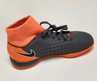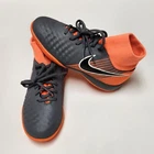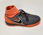 Elevate your child's indoor soccer game with these Nike Jr. Obra II soccer shoes in a striking gray-orange colorway. Designed for both boys and girls, these shoes feature a comfortable fit and optimal performance on the field. The shoes' unisex design makes them suitable for all players, while the Nike brand ensures quality and durability. Perfect for young soccer enthusiasts, these shoes are ideal for team sports and sporting events. The shoes' main color of orange adds a pop of style to any soccer player's wardrobe. They are available in various sizes to fit growing feet. Get your child ready for their next soccer adventure with these Nike Jr. Obra II soccer shoes. Molded perforated sockliner provides lightweight cushioning Asymetrical lacing system expands the ball control area Dynamic fit collar and synthetic leather upper Rotation zone in the forefoot is ideal for quick turns and agile playmaking Shoe is made for indoor surfaces