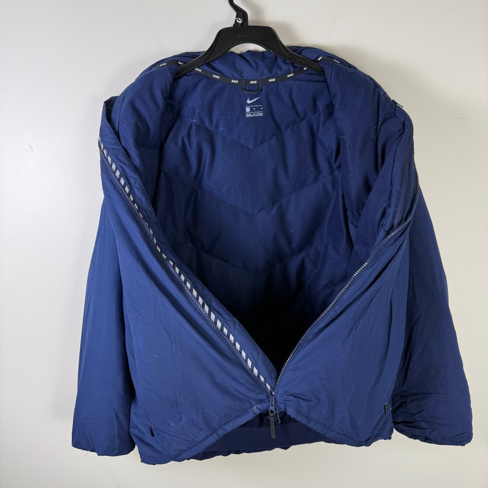 Navy Blue Nike Juan Diego active streetwear goose down puffer winter coat, mens size M. Its in great condition, no holes or stains Some of the down feathers are sticking out/coming out of the jacket Its been washed before listing Please reference photos before purchasing