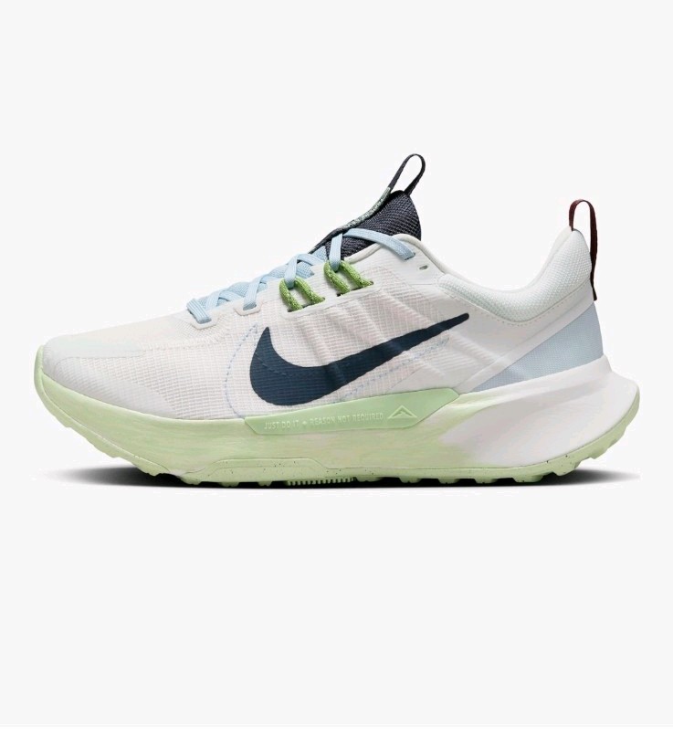 The Nike Juniper Trail 2 Next Nature 'White' Women's sneakers in size 7.5 are a stylish and sustainable choice for athletic women. Featuring a mesh upper, these sneakers offer both breathability and support for your active lifestyle. The color scheme of Summit White/Vapor Green/Chlorophyll/Thunder Blue adds a unique and vibrant touch to your outfit. With a release date of 2024, these sneakers are part of the Nike Juniper Trail product line, designed for performance and style.