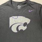 Nike (The Nike Tee) Kansas state University Wildcats, NCAA Men's Size Large T-Shirt, Short Sleeve Black tee with silver and purple printed graphics Purple Nike Swoosh hit on upper left chest Large KSU Wildcat Head Logo on front in silver and purple NCAA officially licensed gear See photos for details, appearance and measurements Brand New With Tags Buy It Now and Save $$ Inv#0546