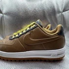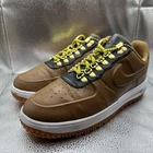 The Nike LF1 Duckboot Low Brown Black Mens Leather Sneakers in size 8.5 are a stylish and comfortable choice for casual wear. These sneakers feature a lace-up closure, rubber outsole, and leather upper material for durability. With a cushioned insole and foam lining, they provide comfort for all-day wear. The low-top design and solid brown color make them versatile for various seasons and occasions, while the Nike branding adds a touch of sporty style. Made in Vietnam, these sneakers are a trendy addition to any man's wardrobe.
