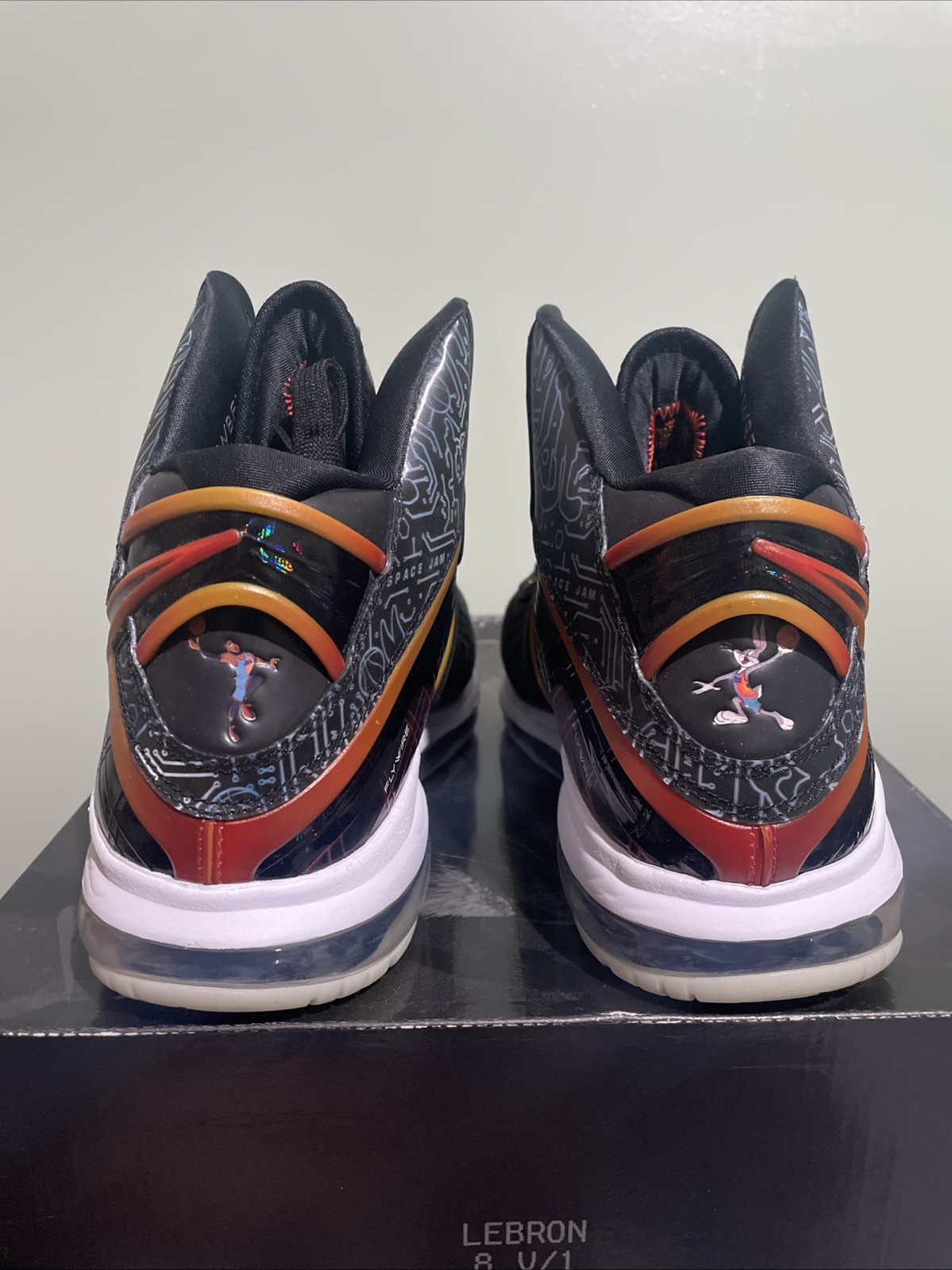 The Nike LeBron 8 QS Space Jam in size 11.5 is a stylish and high-performance athletic sneaker designed for men. Featuring a sleek black colorway with accents of multi-color, this shoe is part of the Nike Air Max LeBron 8 model line. Made with a leather upper material, this sneaker offers a combination of durability and comfort for everyday wear or sporting activities. The iconic Space Jam-inspired design, along with the nickname "A New Legacy," adds a unique and nostalgic touch to this 2021 release from Nike.