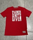 WG-Cf-J9 Show your love for LeBron and the Nike brand with this bold red T-shirt. Made of organic cotton, this regular-fit tee features a crew neck and short sleeves. The Nike logo is prominently displayed on the front, along with the words "EARNED NOT GIVEN" and the number 6, in reference to LeBron James. Ideal for any LeBron fan or Nike enthusiast, this T-shirt is perfect for all seasons and can be worn with jeans or shorts for a casual look. It's a great addition to any collection and is sure to turn heads wherever you go. Don't miss out on the chance to own this unique and stylish shirt.