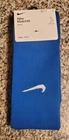 The Nike Matchfit Adult Blue Knee High Polyester Cushion Logo Soccer Socks are designed for men and feature Dri-Fit technology, arch support, cushioning, moisture-wicking, and breathability, making them ideal for soccer, running, and gym training. This pair of royal blue socks in size medium (6-8) is machine washable and made of a polyester blend material for comfort and durability. With the Nike logo on the socks, they offer performance and style for various seasons throughout the year. Pictures are of actual socks. Brand new never worn and no defects. Feel free to contact me with any questions .