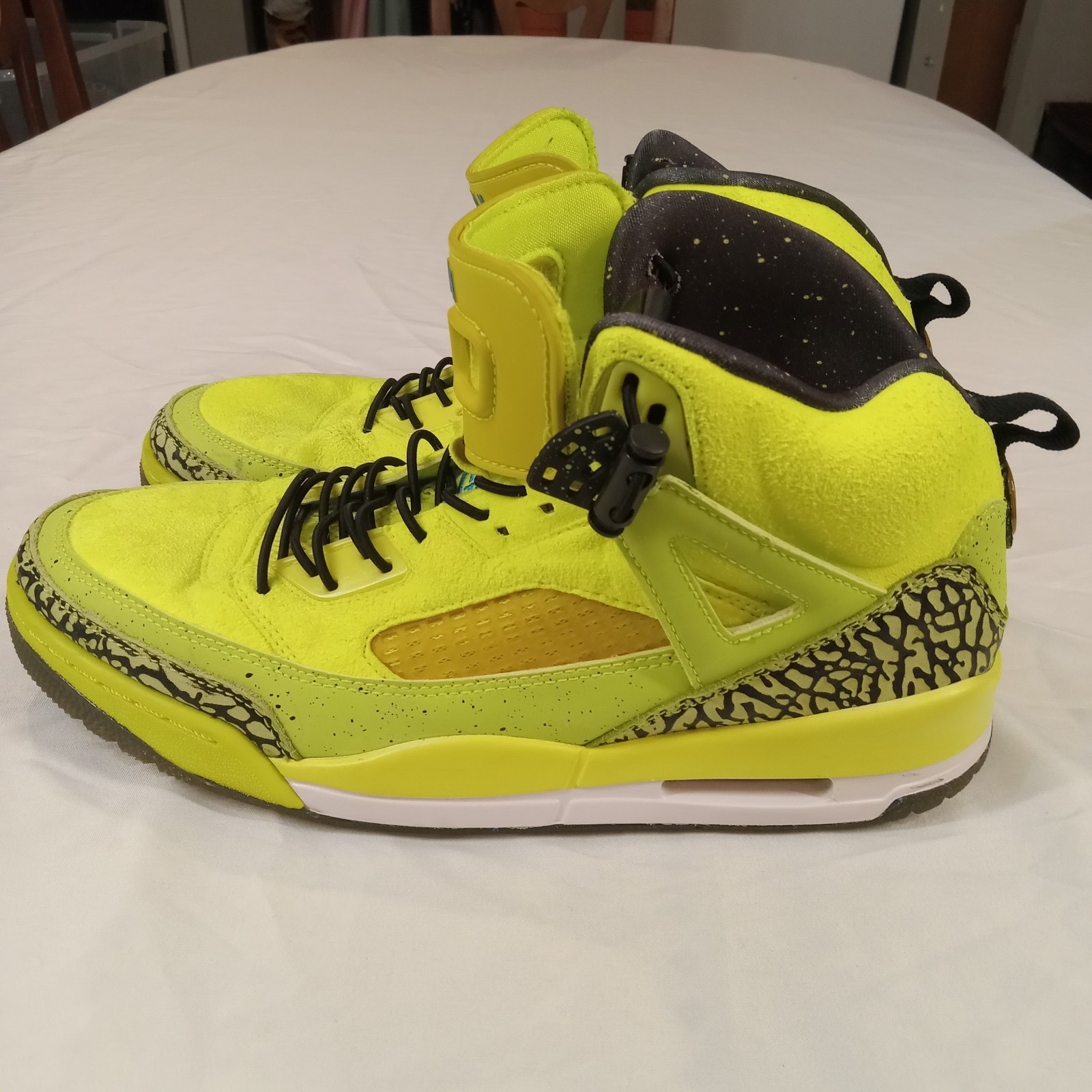 Nike Men's Air Jordan Spizike BHM Green Neon in size 10 is a stylish and iconic sneaker from the Jordan brand. Featuring the unique color combination of Volt/Black-Photo Blue with a green tint, this athletic shoe is part of the Jordan Spizike product line. Originally released in 2013, this sneaker is a must-have for fans of Jordan and sneaker enthusiasts alike. The model, style code, and nickname all point to the exclusive and vibrant design of this shoe. on Good condition please see pictures