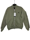 Elevate your everyday style with the Nike Jordan Essentials Renegade Jacket. This mid-length jacket features a full zip closure, band collar, and long sleeves with a blended fabric of 71% polyester and 29% nylon. The olive green color and solid pattern give it a versatile look that is perfect for any occasion, whether it's casual wear or activewear. The jacket also has pockets to keep your essentials close by, making it ideal for everyday use, walking, hiking, or even basketball. The Nike Jordan Essentials Renegade Jacket is machine washable and is available in size M. With its bomber jacket style and the iconic Nike Jordan 23 character family, this jacket is a must-have for any fashion-forward man.