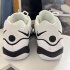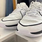 A lightweight Nike Air unit at the bottom of the upper gives KD the cushioning and comfort he needs to thrive during a long season. KD loved the 15’s underfoot experience, so we took inspiration from the previous iteration and added a bottom-loaded forefoot Zoom Air unit for extra pop and snappiness when the game hits high speeds. Responsive full-length foam adds a soft, comfortable sensation. Grooves and ridges in the sole help provide multidirectional traction and court feel. A stiff piece under the arch helps keep the shoe stable and help you smoothly transition from heel to toe. Multilayer mesh in the upper is lightweight and dimensional with a broken-in feel. Added thickness in strategic areas helps to keep your foot in place by reducing small movements. Good preowned condition- some dirt marks and small “scuffs” {SEE ALL PHOTOS). Inner heal does have some light discoloring. SEE PHOTOS 8 thru 12. I don’t believe they were worn outside or on the court.