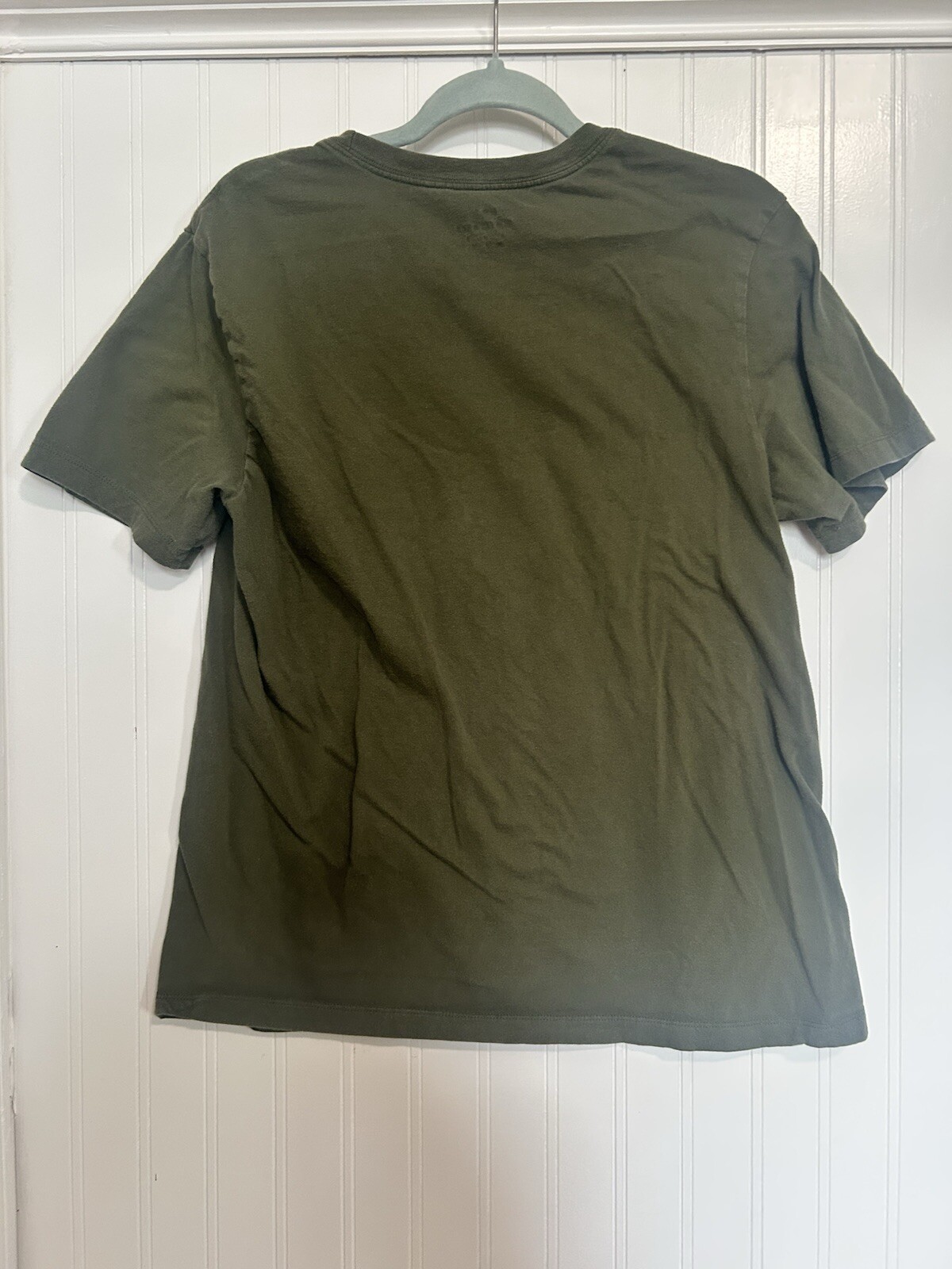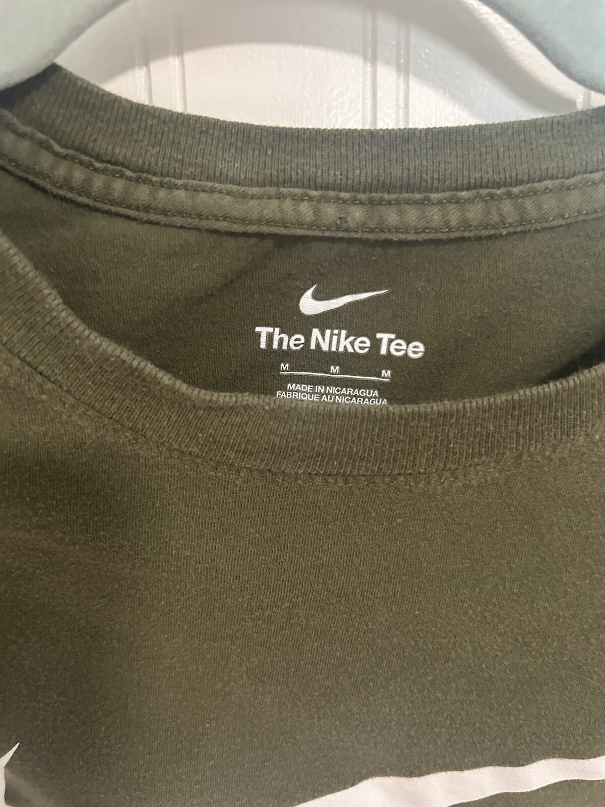 The Nike Tee Men's Medium Green Short Sleeve Shirt is a classic and versatile piece of clothing perfect for any sports enthusiast. Made of comfortable cotton material with a Crew Neckline and Regular fit, this shirt is ideal for all seasons. The solid green color and Nike Dri-FIT technology make it a stylish and functional choice for any casual or athletic outfit. Whether you're hitting the gym or running errands, this shirt is a great addition to your wardrobe for the modern man.