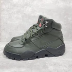 Elevate your outdoor experience with the Nike Rhyodomo Boots in a striking Olive Green hue. Designed for a variety of terrains, these size 9 boots (UK 8, EU 42.5) blend tactical functionality with the comfort you need for hiking, hunting, or a casual walk. The solid color, high-top silhouette, and subtle logo accents make these sneakers a stylish choice for any casual occasion. Crafted with a durable leather upper and cushioned foam insole, these sneakers offer breathability and comfort for all-day wear. The lace-up closure ensures a secure fit, whether you're navigating rocky trails or urban jungles. With their versatile design and the reputable Nike BQ5239-300 style code, these Rhyodomo boots are a smart addition to your footwear collection.
