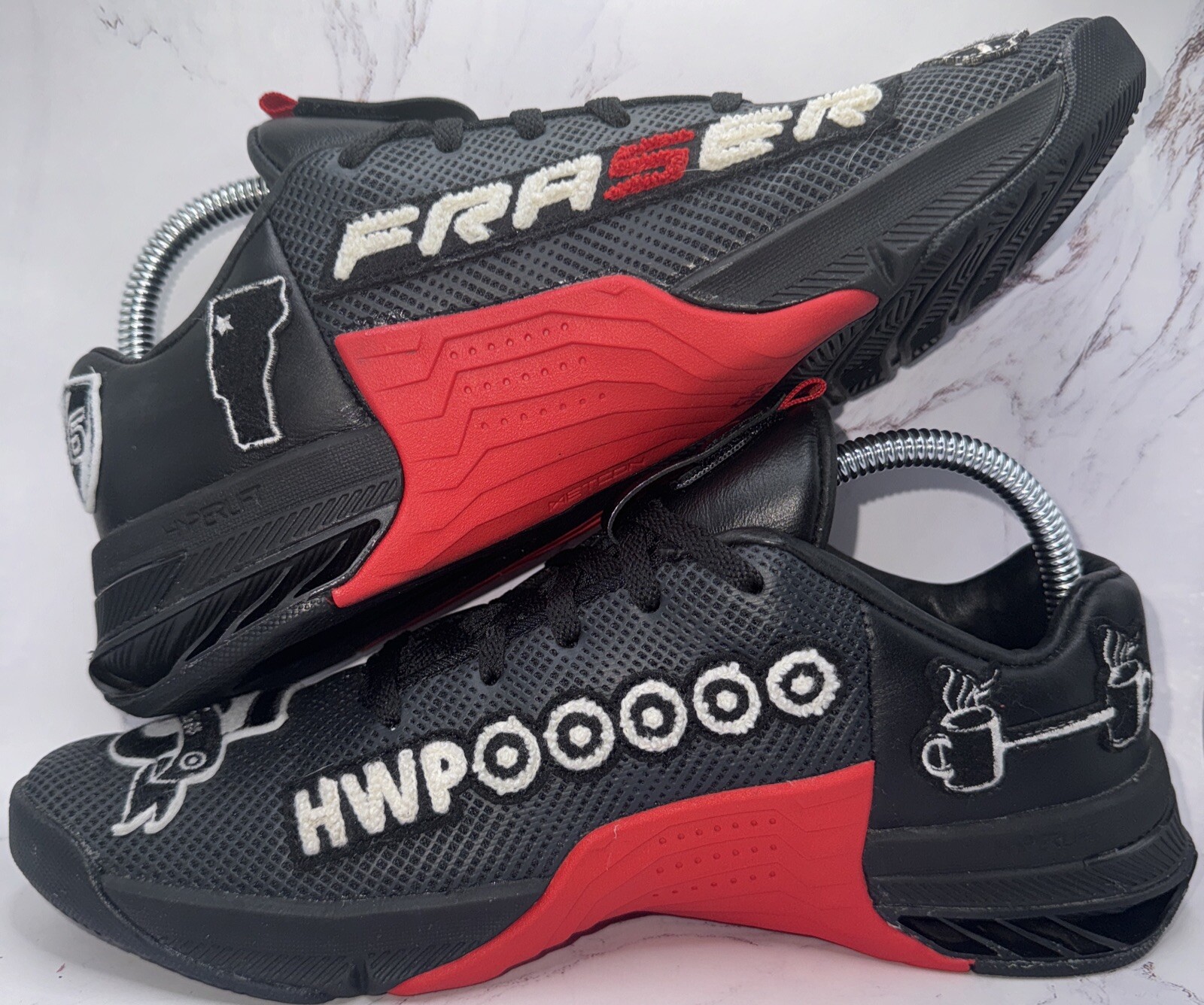 Elevate your training game with the Nike Metcon 8 MF Mat Fraser PE Men's SZ 7 Training Shoe in Black. This stylish and versatile sneaker boasts a low top shoe shaft style, lace-up closure, and a standard shoe width. Its solid pattern, black color, and Nike branding make it a perfect addition to your activewear and casual wardrobe. The shoe's rubber outsole material provides a durable and stable grip, while the foam insole material ensures comfort and support during gym and cross-training sessions, as well as CrossFit workouts. With its UK shoe size of 10.5 and EU shoe size of 45.5, this Nike Metcon 8 MF sneaker is designed to fit men who are looking for a high-quality athletic shoe.