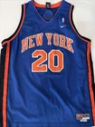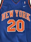 Show your support for the New York Knicks with this Nike NBA #20 Allan Houston Road Away Throwback Jersey. This officially licensed jersey is perfect for any basketball fan and features the iconic blue color of the team. The 2XL size is designed for men and is made with high-quality materials for maximum comfort and durability. This jersey is perfect for wearing to games or just around town to show off your team spirit. It features the name and number of Allan Houston, a former player for the New York Knicks who played in the NBA. This product is made in Korea, Republic of and is a must-have for any Knicks fan. There is a tiny hole in the Jersey, please see pictures.