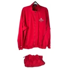 Nike NC State North Carolina Red 2 Piece Tracksuit Athletic Jacket Pants Set XL Show your spirit for NC State with this sporty two piece tracksuit set from Nike. Size: XL Color: Red Matching two piece set Jacket has zip up front closure, long sleeves, embroidered NC State logo and pockets. Pants have elasticized stretch waistband with adjustable inner drawcord, zipper pockets, and zipper leg hems. Polyester ClimaFit Measurements shown in photos Great condition