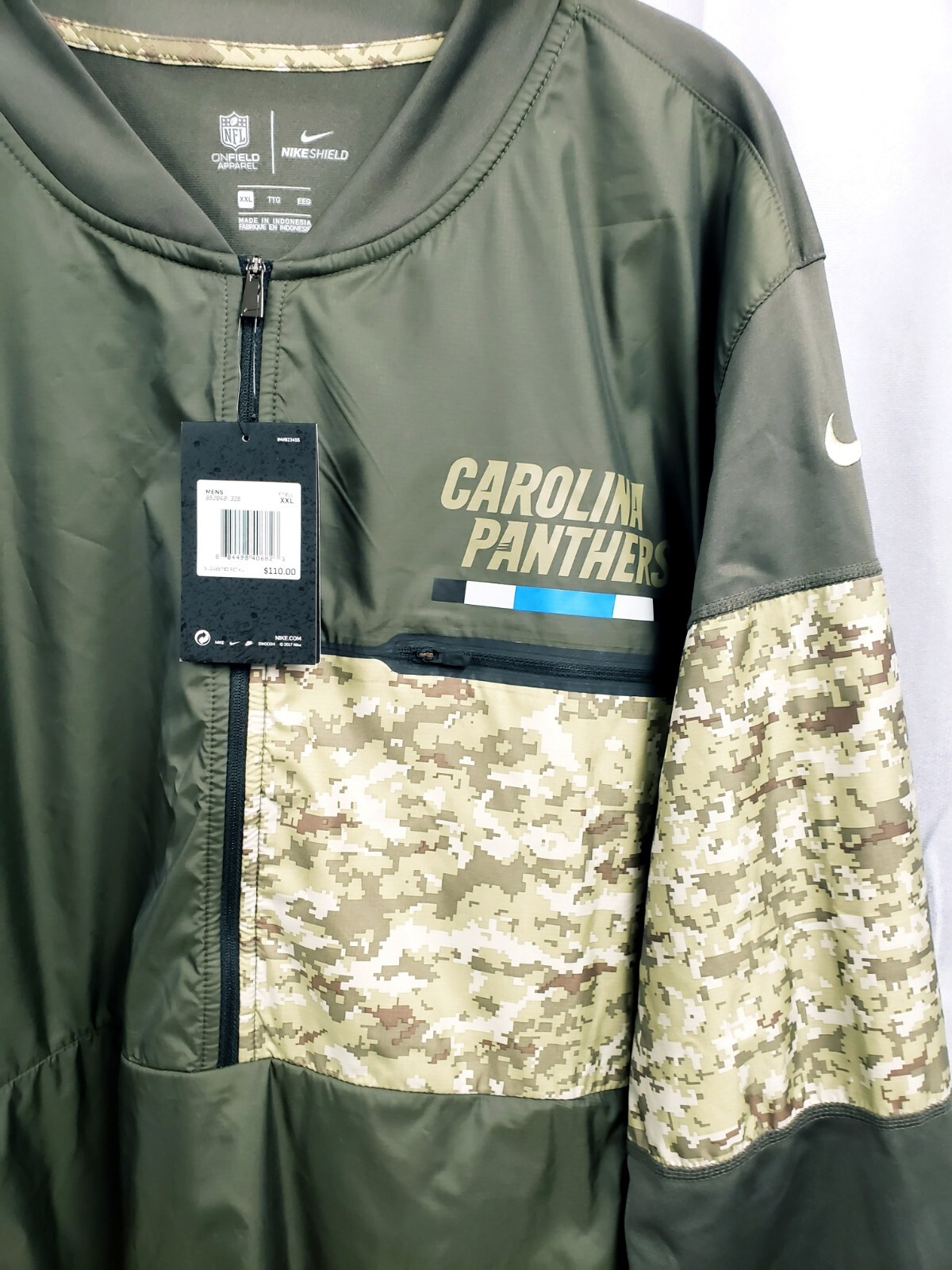 Nike x NFL Carolina Panthers Salute to Service 1/2 Zip Pullover Jacket Size XXL Chest: 54" Length: Front: 30" Back: 34" Sleeves: 26.5" shoulder to cuff 21" underarm to cuff New with tags ~~~~~~ Be sure to view my store! I will gladly combine shipping ! ~~~~~~ Photos are taken by me and are of the exact item you will receive unless otherwise stated. Photos are taken under photography lighting. ~~~~~~ Bid and buy with confidence! Kittens06 - a Mother & Daughter team with over 4000, 100% positive reviews and 15+ years with Ebay! ~~~~~~ Payment is expected within 48 hours. Please contact me if you would like additional time or need to cancel your purchase. Unpaid item cases automatically open after 72 hours. I reserve the right to cancel your order if payment is not received within 3 days. ~~~~~~ Items are typically shipped within 1 day or less ! ~~~~~~ International buyers are welcome, please contact me prior to purchase for a direct shipping quote. ~~~~~~ Returns are accepted per Ebays Money Back Guarantee. Please refer to Ebays return policy under the MBG. All other returns will be reviewed on a case by case basis. Returns must be initiated within 48 hours of receiving your item. The buyer may or may not be responsible for return shipping. Items not returned in the exact condition as received will not be accepted and will result in either no refund or a partial refund. Return requests for issues that would have been avoided through communication prior to purchase will not be accepted. All accepted returns will be properly documented for seller protection against buyers abusing the MBG! ~~~~~~ Please ask all questions before committing to buy . I typically respond within an hour. ~~~~~~