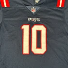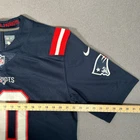 Nike NFL New England Patriots No.10 Jones Jersey Blue USA V-Neck Size Medium This does have some light marks on it along with some damage to the inside collar label as shown.