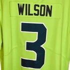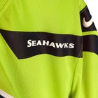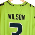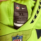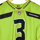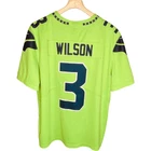 Nike NFL Seattle Seahawks Neon Green, Teal, & Black Russell Wilson Jersey. Size XL. Features neon green shell, v neckline, NFL patch at neck, teal 3 logo at chest, black strip at sleeves, white Nike logo at sleeve, short sleeves, teal Russell Wilson 63 at back. VGUC / very good used condition - minor wear at NFL patch at bottom; refer to pics. Tags: fall, winter, spring, summer, all seasons, Nike, NFL, Seattle Seahawks, neon green, teal, black, white, Russel Wislon, sewn, jersey, outdoors, football, casual, game day, everyday wear, weekend wear. Shoulder: 21.25" Chest: 25" Waist: 24" Sleeve: 11.5" Length: 31" ***Measurements are approximate.***