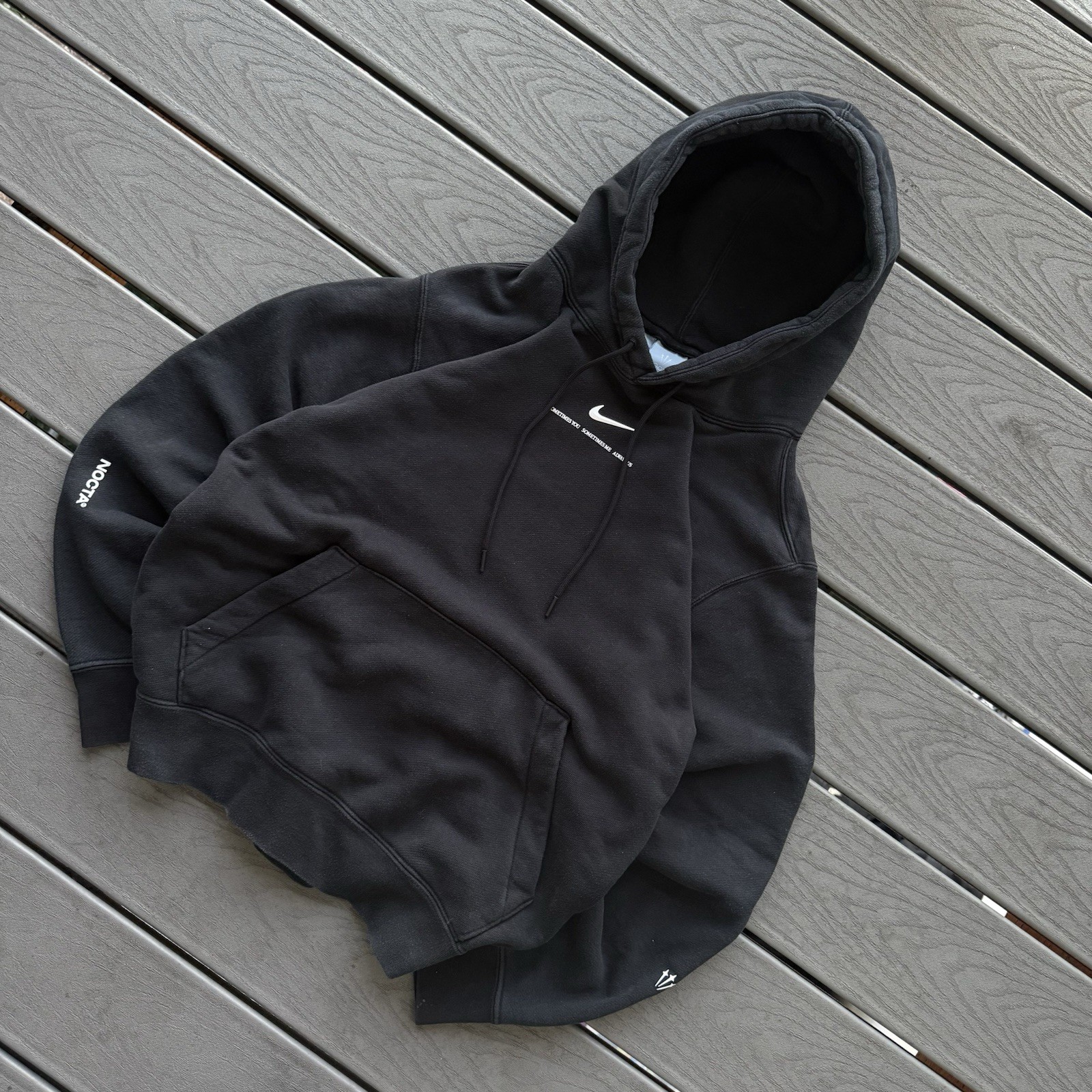The Nike x NOCTA Men’s Large Drake Pullover Hoodie in Black features a classic pullover style with a hood and logo accents. Made from cozy fleece fabric, this hoodie is perfect for all seasons and includes convenient pockets for storage. The garment care is machine washable, making it easy to keep clean and fresh. With its designer theme and hip hop vibe, this hoodie combines modern style with a touch of classic outdoor appeal. Made by Nike in collaboration with NOCTA, this hoodie is a must-have for any music or sports enthusiast.