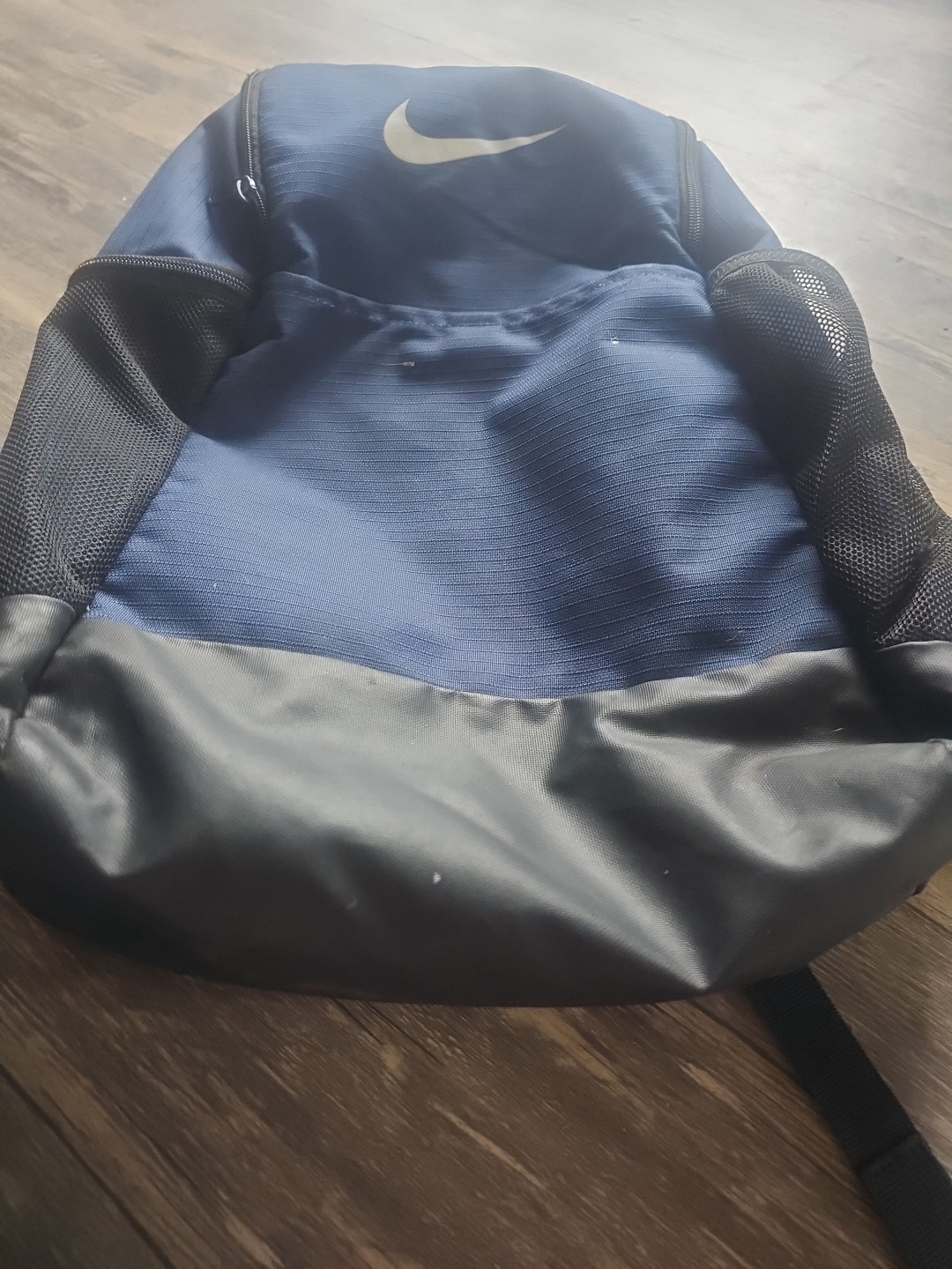 This Nike backpack is perfect for men who want to stay organized and stylish on-the-go. The navy blue color is both classic and versatile, making it an ideal choice for any outfit or occasion. Crafted from high-quality polyester, this backpack is durable and built to last. With plenty of room for all your essentials, this backpack is perfect for everyday use or travel. The sleek and modern design is finished with the iconic Nike swoosh, making it a must-have accessory for any fashion-conscious man. Whether you're heading to the gym or exploring the city, this Nike backpack has got you covered. This is a gently used Backpack