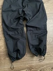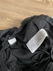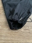 The Nike Nylon Inter Milan FC Baggy Parachute Pants in size M are vintage style track pants featuring a drawstring closure, elastic waist, and pockets. Made of blended fabric with a solid black color, these pants are perfect for activewear occasions like gym training, soccer, or running. The wide-leg design and comfortable fit make them ideal for summer, fall, and spring seasons. With a nod to the 90s theme and American character, these Nike track pants are a stylish addition to any man's wardrobe. !!!The Nike logo on the pants has come off, and the drawstrings at the bottom of the legs were custom-fitted at a tailor shop.