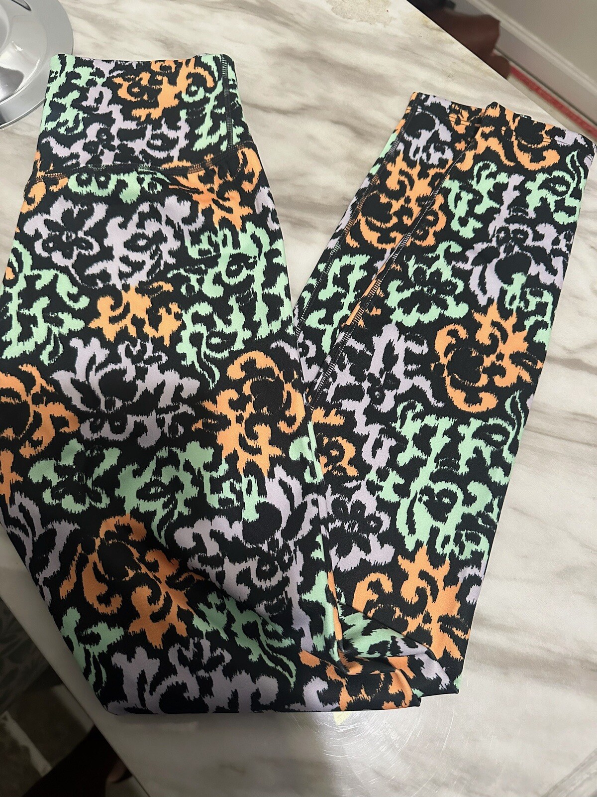 The Nike One Leggings in size XS are a stylish and functional pair of activewear pants suitable for various activities such as yoga, running, and cross training. Made from polyester blended fabric, these leggings feature a solid pattern with a multicolor design and a pull-on closure for easy wear. The compression area is targeted towards the legs, providing a comfortable and supportive fit. The athletic fit and elastic waistband ensure a snug and comfortable experience, making them perfect for workouts in all seasons. With the Nike Dri-FIT technology, these leggings are machine washable and offer both style and performance for active women.