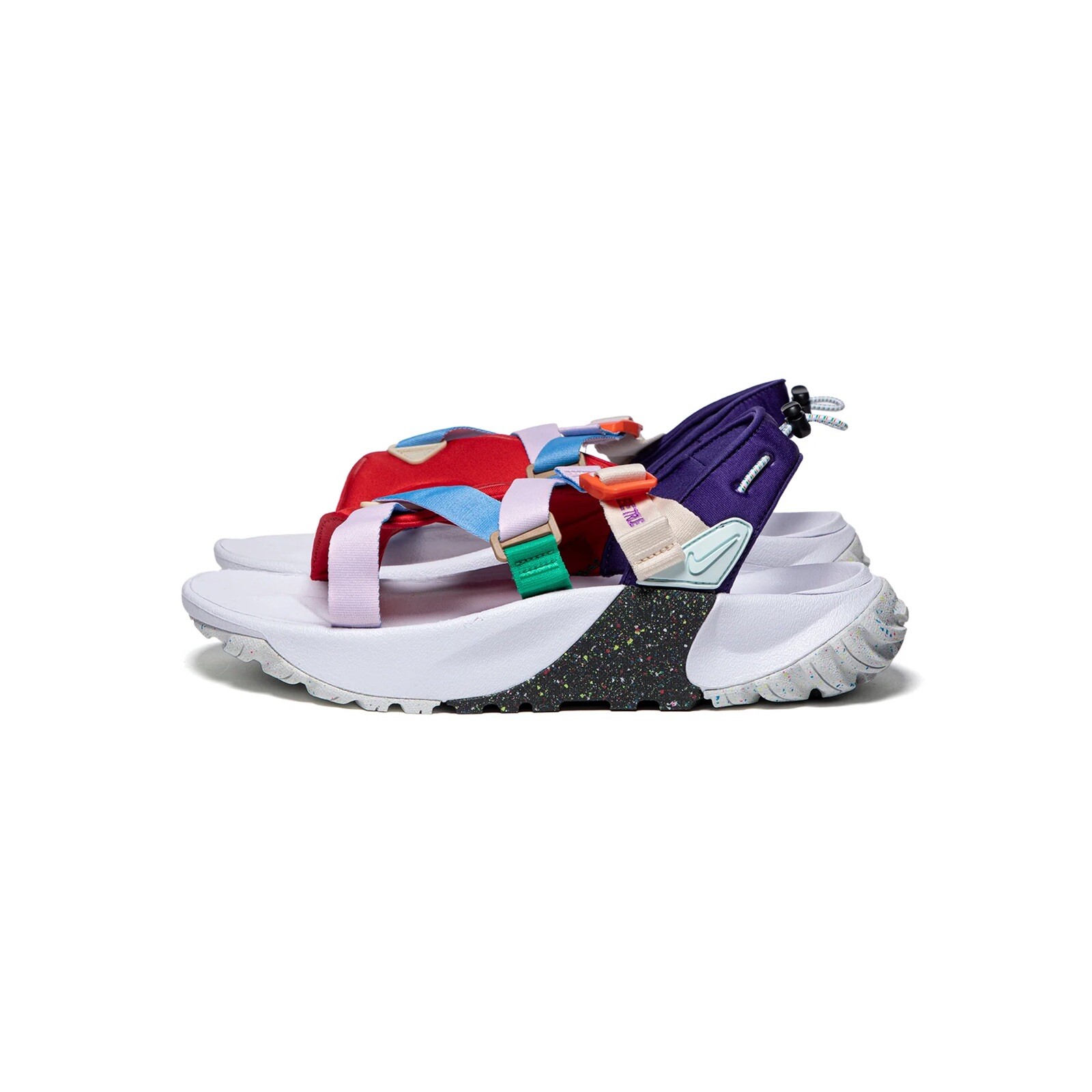 Nike Oneonta Betrue Sandals Mens Size 12 Be True Rainbow Carabiner DR4870-600. Condition is New with tags and box. Nike's Oneonta "Be True" sandals take their name from the Columbia River falls that flow through the labels home state. The sandals feature a rainbow of interlacing webbing and neoprene straps and embroidered lettering. Adjustable fastenings, cinch cord at the heel, a contoured footbed and flecked lug soles provide comfort and superior grip on uneven surfaces. Strap in-the city, sand, and mountains are calling. Highlights: • multicolor webbing neoprene • lightweight and durable construction • embroidered motif • crossover strap detail • open toe • ankle strap • toggle fastening • chunky rubber sole • paint-speckled rugged outsole Color Way: University Red, Glacier Blue, Pink Foam Composition: 100% Rubber Sole with Fabric Outer and Lining