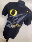 Nike University of Oregon Ducks Rose Bowl Football T-Shirt Large Black OR Nike Standard Fit T-Shirt University of Oregon Ducks Graphic with Football and the Rose Bowl Logo and Coordinates Black Size Large Pre-worn in very good condition. Tons of life left. No rips, tears or stains. Please see pics for details. If you have any questions Please ask. I ship fast.