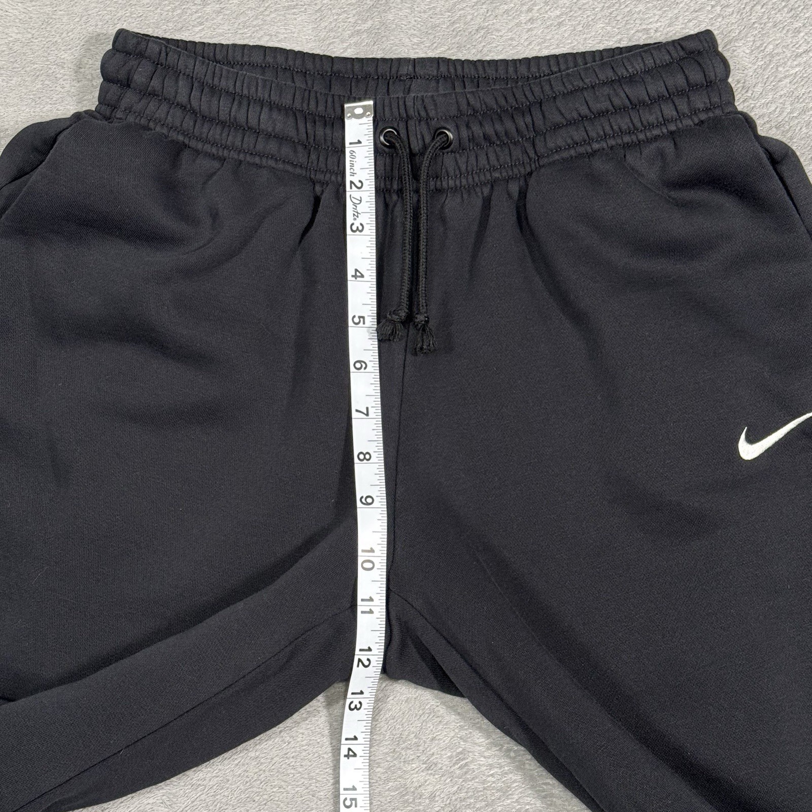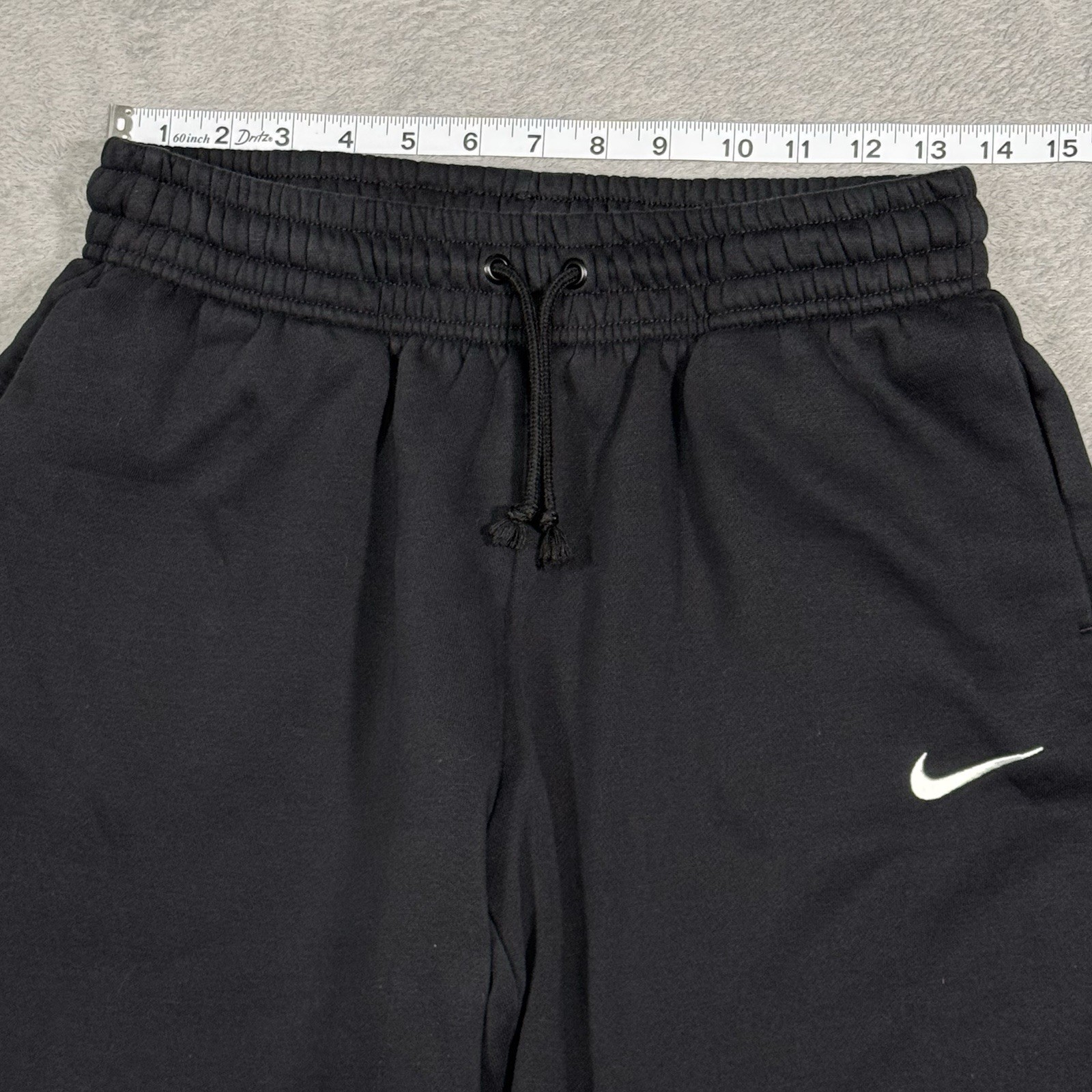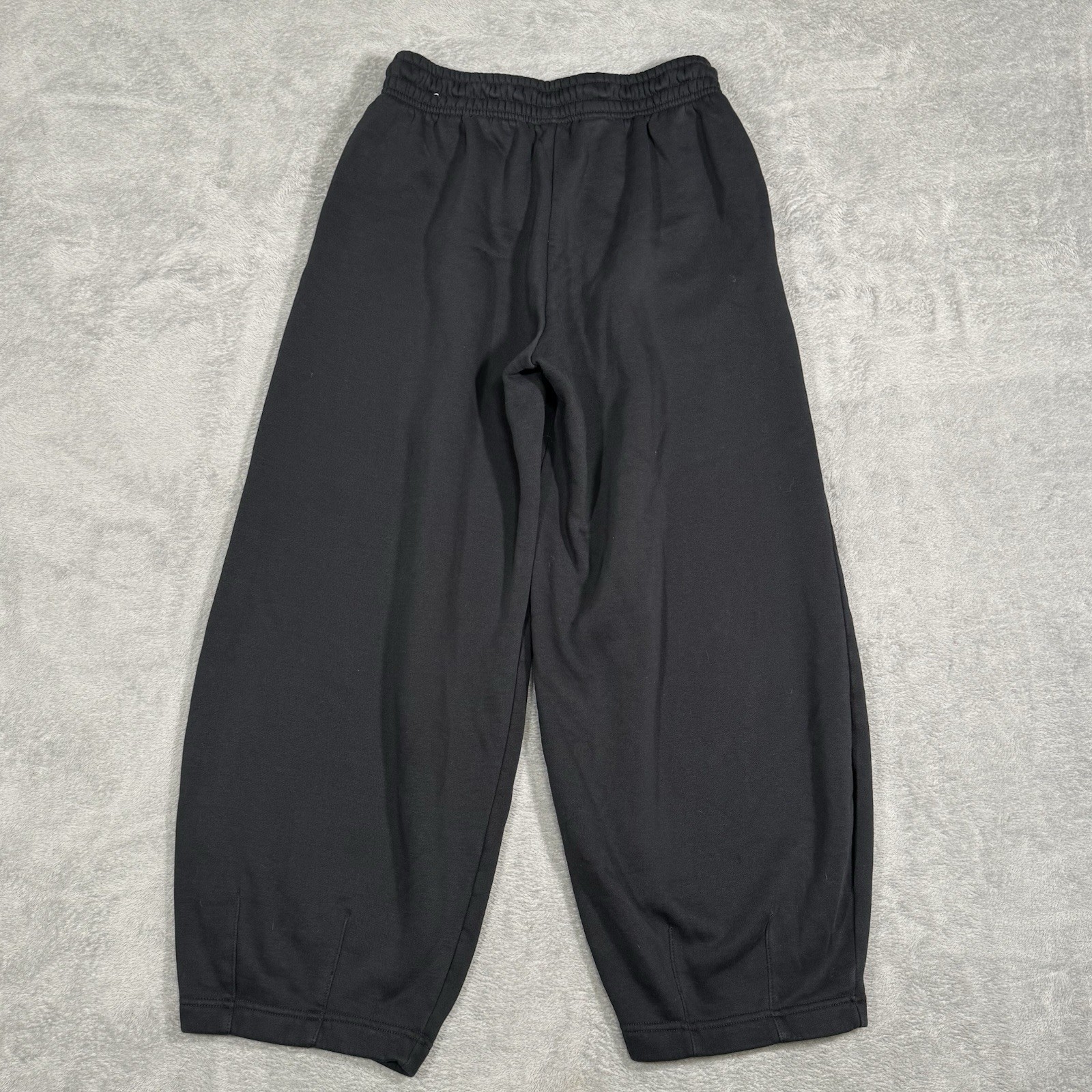 Nike Sportswear Phoenix Fleece women’s black sweatpants with a wide-leg cropped fit. Soft brushed fleece interior, elastic drawstring waist, and embroidered Swoosh on leg. Relaxed athleisure/lounge silhouette with clean minimalist styling. Good pre-owned condition with normal light wear. Measurements (laid flat): Waist: ~14” (elastic) Rise: ~12” Inseam: ~27.5” Leg Opening: ~10” Details: Size: Womens Small Color: Black Material: 80% Cotton / 20% Polyester Model: Nike Sportswear Phoenix Fleece Made in Malaysia