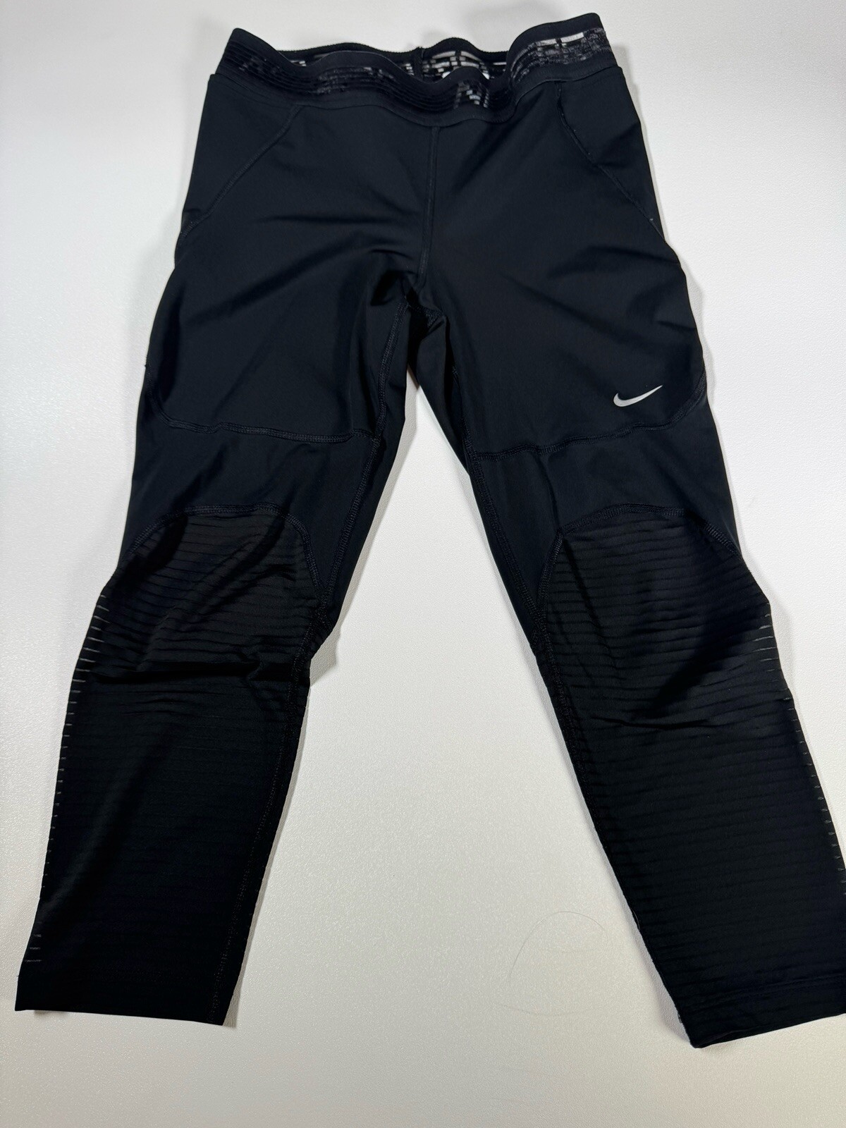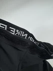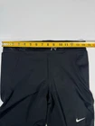 Elevate your activewear game with these Nike Pro leggings in size L. The solid black color and skinny leg style make these capri leggings perfect for any athleisure outfit. The elastic waist and compression area provide comfort and support during any yoga or physical activity. Machine washable and made of a blend of polyester and spandex, these leggings are both stretchy and durable. The Nike logo adds a touch of sporty style to these versatile leggings, perfect for travel, casual wear, or any athletic occasion.