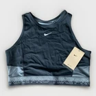 Elevate your workout wardrobe with the Nike Pro Dri-FIT Cropped Training Tank Top. Designed for the modern woman who seeks both style and functionality, this tank features Nike's innovative Dri-FIT technology, ensuring you stay cool and dry during even the most intense workouts. The sleek black and gray color scheme pairs effortlessly with your favorite activewear, making it a versatile addition to any fitness enthusiast's collection. Crafted with a focus on performance, this cropped tank top is part of the esteemed Nike Pro product line, known for its high-quality fabrics and impeccable craftsmanship. The regular size small fits true to size, providing a comfortable and flattering silhouette. Whether you're hitting the gym or enjoying an outdoor jog, this Nike Dri-FIT tank is engineered to support your active lifestyle.