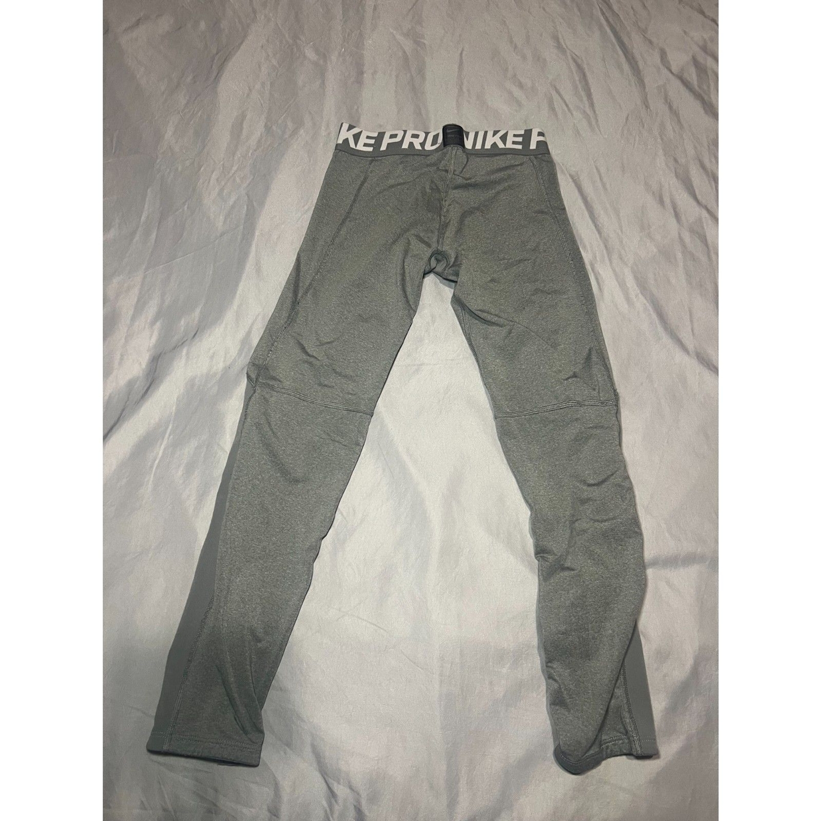 Boys gray Nike compression athletic leggings.