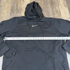 The Nike Pro Hoodie Sweatshirt Pullover in Black with a loose fit is a versatile and comfortable activewear piece designed for men. Made from 88% polyester and 12% spandex, this hoodie features a drawstring closure, long sleeves, and a hood for added warmth and style. With accents like the Nike logo, a kangaroo pocket, and a side zipper pocket, this pullover is perfect for various activities like tennis, hockey, basketball, and more. Additionally, its relaxed fit makes it suitable for everyday wear during the winter, fall, and spring seasons.