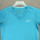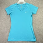 Nike Pro Shirt Womens Medium Fitted Blue Dri Fit V-Neck Performance Top 458663 Item is in good condition. Free from spots or stains and shows normal wear or better. Item measurements are in the photos and as follows: Chest: 34" (measured at armpit) Length: 26" (measured from neck seam to hem) Shipping and Returns I usually ship within 2 business days so you get your order fast! I accept no hassle returns for items within 30 days, even if you just do not like it. Please feel free to ask any questions you may have. I answer most questions as soon as possible and thanks for looking!