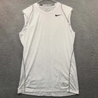 Type: T-Shirt Fabric Type: Woven Vintage: No Size: S Department: Mens Material: Polyester Blend Occasion: Casual Pattern: Solid Product Line: Nike pro Sleeve Length: Sleeveless Brand: Nike Size Type: Regular Color: White Garment Care: Machine Washable Closure: Pullover