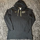 This Nike Purdue Boilermakers hoodie is an officially licensed piece of fan apparel designed for men. It features the team's logo and is made of Dri-Fit material for on-field performance. The hoodie is in size S and color black, perfect for showing support for the Purdue Boilermakers during the regular season. Made in Vietnam, this high-quality garment is in excellent used condition.
