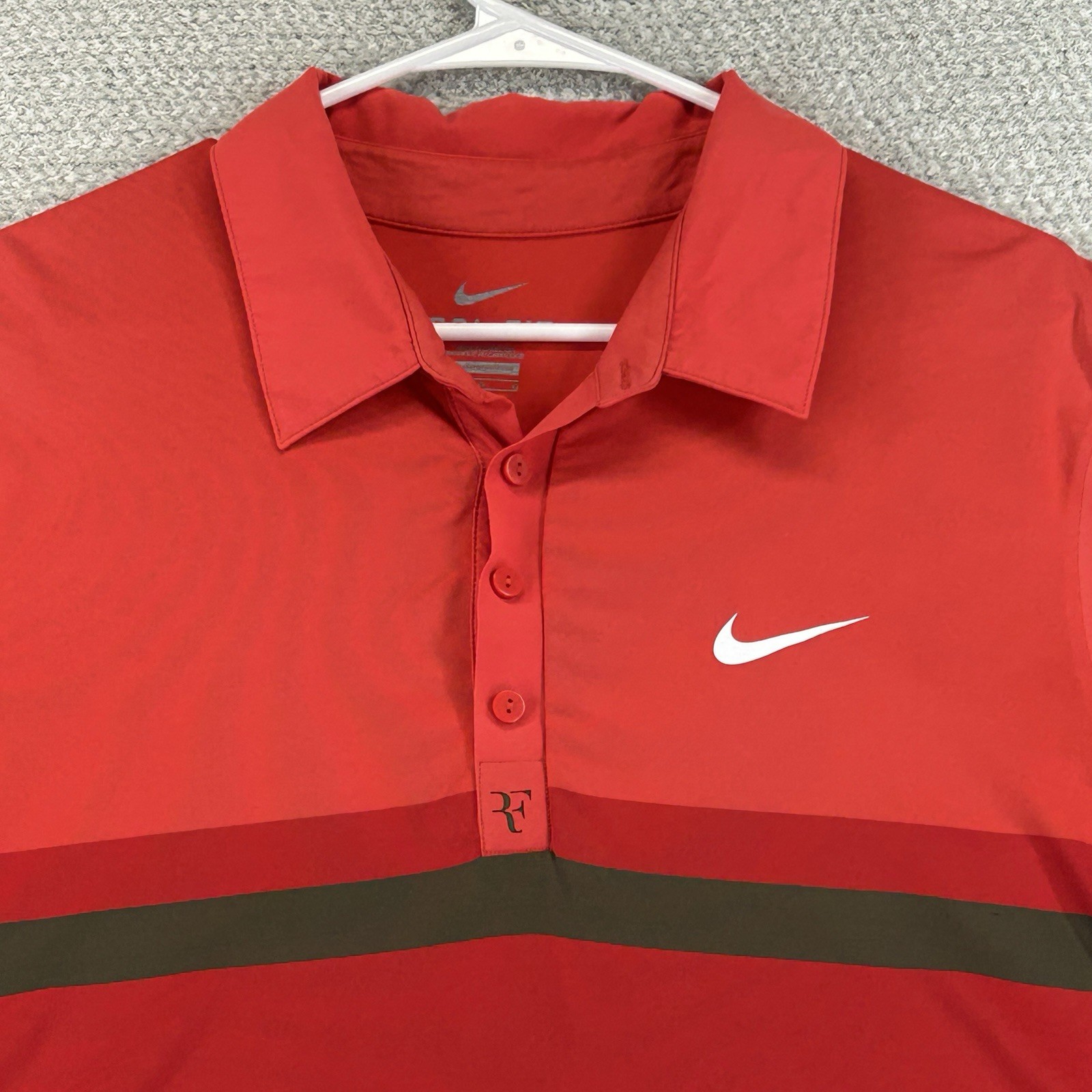 Nike RF Roger Federer Tennis Polo Shirt Men’s Large Red 2012 Australian Open No rips or holes, small thread pull on front near left chest and light discoloration in armpits. Normal signs of wash and wear. Please see photos for condition and measurements. Item shipped via USPS Ground Advantage