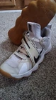 The Nike React HyperSet White/Black Volleyball Sneakers in shoe size 7.5 are a stylish and comfortable mid-top shoe designed specifically for volleyball players. These sneakers feature a classic white and black color scheme with accents such as lace, strap, and logo detailing. Made with synthetic upper material, they offer comfort and adjustable strap for a secure fit during intense gameplay. With the Nike React product line, these sneakers provide the performance and activity features needed for competitive volleyball matches. Perfect for women who value both style and function in their athletic footwear. Very comfortable shoes that could be worn as the everyday shoe running walking or sports. Would make a great gift. Normal wear and tear from being slightly worn.