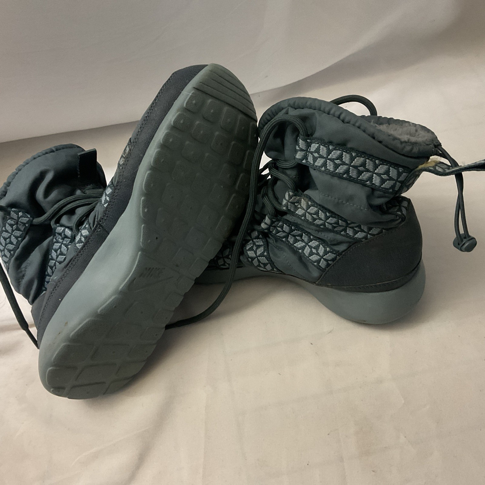 The Nike Roshe Run Hi Women's Sneaker Boots in Grey are a stylish and functional choice for winter. These lace-up boots feature a lined interior for added warmth, making them perfect for cold weather. With a sleek sneaker design and the signature Nike Roshe style, these boots combine comfort and style for the modern woman. The grey color and winter season make them versatile for various outfits and occasions, making them a must-have addition to any winter wardrobe.