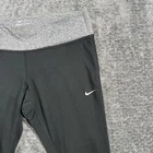 The Nike Running Dri-FIT Leggings in Women's Medium are perfect for any active occasion. Made from a blend of polyester and spandex, these black leggings offer a solid color with a pull-on closure for easy wear. The leggings feature a compression area for the thigh, waist, and leg, as well as an athletic fit for maximum comfort and flexibility. With a skinny leg style and a 22-inch inseam, these leggings are designed for activities like gym training, running, yoga, and more. The Nike Dri-FIT technology ensures moisture-wicking performance, making them ideal for year-round use.
