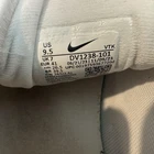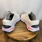 Brand: Nike Style: Womens low-top running shoes with cushioned midsole and lace-up closure for everyday training and athletic wear. Color: Off-white / cream upper with light purple midsole, bright red Swoosh accents, black heel branding, and white laces. Size on tag: Womens US 9.5, UK 7, EUR 41, CM 26.5. Style/Model code: DV1238-101. UPC: 00197593617204. Details: Lightweight woven/mesh-style textile upper, padded collar, foam midsole with wavy sculpted sidewalls, durable black rubber outsole, Nike Swoosh logos on sides, Nike wordmark on heel, and printed pull tabs on tongue. Manufacture info: Dated 09/21/23 to 11/09/23; made in Vietnam (per interior label).