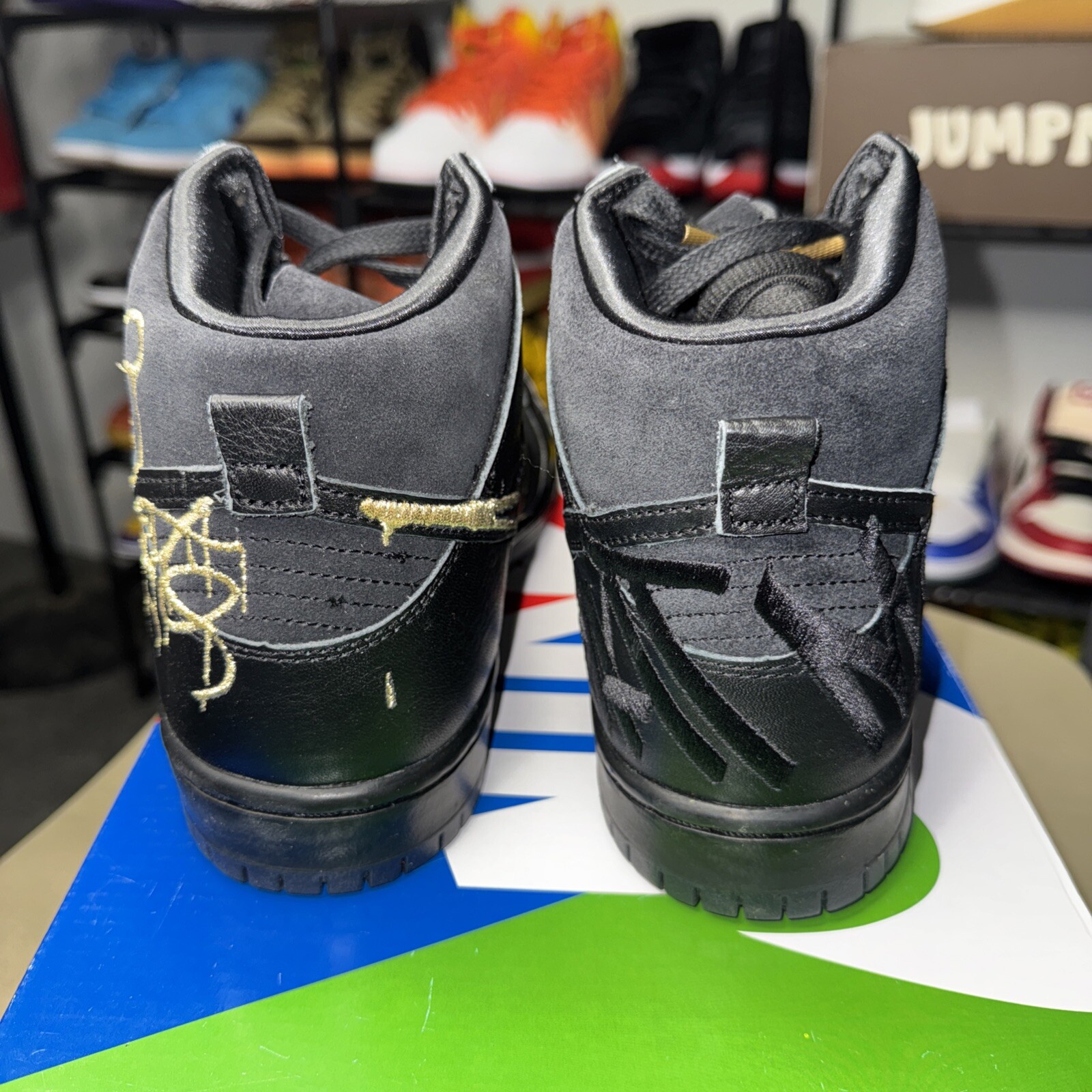 Elevate your sneaker game with the Nike FAUST x Dunk SB High The Devil is In The Details. This stylish and comfortable athletic shoe boasts a high top shoe shaft style, leather upper material, and a black colorway with metallic gold and black accents. The sneaker also features a unique design code, DH7755-001, and was released on August 28, 2022, making it a must-have for any sneaker enthusiast. The Nike Dunk SB is a men's shoe that is perfect for any casual occasion. With its sleek and modern design, this sneaker is sure to turn heads. Whether you're looking for a comfortable shoe to wear all day or a stylish shoe to complete your outfit, the Nike FAUST x Dunk SB High The Devil is In The Details is the perfect choice.