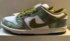 Nike SB Dunk Low x Alexis Sablone "Chameleon" - Size 13 (Brand New) Product Description: The Nike SB Dunk Low Alexis Sablone "Chameleon" is a creative collaboration between Nike SB and pro skateboarder, Alexis Sablone. Known for her unique style both on and off the board, Sablone draws inspiration from chameleons for this standout design. The Nike SB Dunk has been a cultural icon since its debut in the early 2000s, blending performance features with a design that has transcended the skate world. This sneaker features an oil green, desert moss, and white colorway with chameleon-like color-shifting panels and scale-textured overlays that make it truly one-of-a-kind. The playful design is a nod to the ever-evolving world of skateboarding and style. The green scale overlays are a wear-away layer that reveals a purple layer underneath, adding a dynamic touch that changes as the shoes wear in. The Swooshes are made of suede in an olive green color that matches the laces and lining. Features Sablone’s "AS" logo on the heel and interior of the sneaker. Supporting the sneaker is a “Sail” stitched midsole that is joined by a forest green rubber outsole. This mix of artistry, functionality, and personal expression makes the Alexis Sablone "Chameleon" Dunk an instant classic that appeals to skaters and sneaker enthusiasts alike. Released on August 22, 2024 Size: US Men's 13 / US Women's 14.5 Brand New & Authentic in Excellent Condition, 100% Guaranteed / (Fast Shipping)