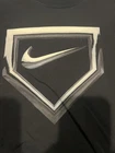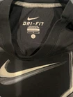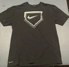 This Nike Shirt is a men's size Large with a crew neck and short sleeves, dri fit. It features the Nike logo as an accent and includes the Dri-FIT technology for moisture-wicking. The shirt is suitable for all seasons and is machine washable. The design of the shirt is sporty, ideal for casual wear or athletic activities.
