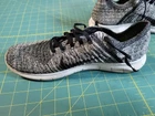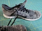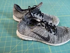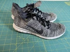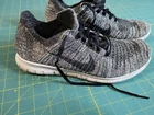 Please see all pictures before buying Sold AS-IS Nike Men's Flyknit RN Shoes in size 9 feature a white and black OREO design with a knit upper for comfort and breathability. These lace-up sneakers are lightweight and cushioned, suitable for various activities like running, walking, and gym training. The rubber outsole provides traction, while the foam insole ensures comfort. The Nike Free RN Flyknit model is ideal for athletic and casual wear, combining style and performance.