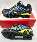 The Nike Shox TL Shoes in Thunderstorm/Black/Volt, size 6, are a stylish and athletic choice for teens. With a low top design and standard shoe width, these sneakers offer both comfort and performance. The synthetic upper material and Nike 6.0 product line ensure quality and durability. Released in 2019, these shoes feature the iconic Nike Shox design and are perfect for everyday wear or sports activities. Style#: CI7692-400 Fabric and synthetic upper with plastic overlays is a near-exact replica of the 2003 Nike Shox TL. Nike Shox cushioning provides distinctive impact absorption. Molded overlays on the midfoot provide support and a snug fit. TPU plate in the heel, between the midsole and the Nike Shox cushioning, helps provide lateral stability and support.