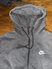 The Nike Sportswear Club Full Zip Hooded Sweatshirt in Charcoal Heather is a versatile and stylish activewear piece suitable for both men and women. Made from a blend of polyester and cotton fleece, this sweatshirt features a solid gray color with the iconic Nike logo embroidered on the front. The full zip closure and hood add practicality to this classic and comfortable sweatshirt, making it perfect for various activities such as gym workouts, running, or casual outings. With its retro sports theme and all-season appeal, this Nike Sportswear sweatshirt is a timeless addition to any wardrobe.