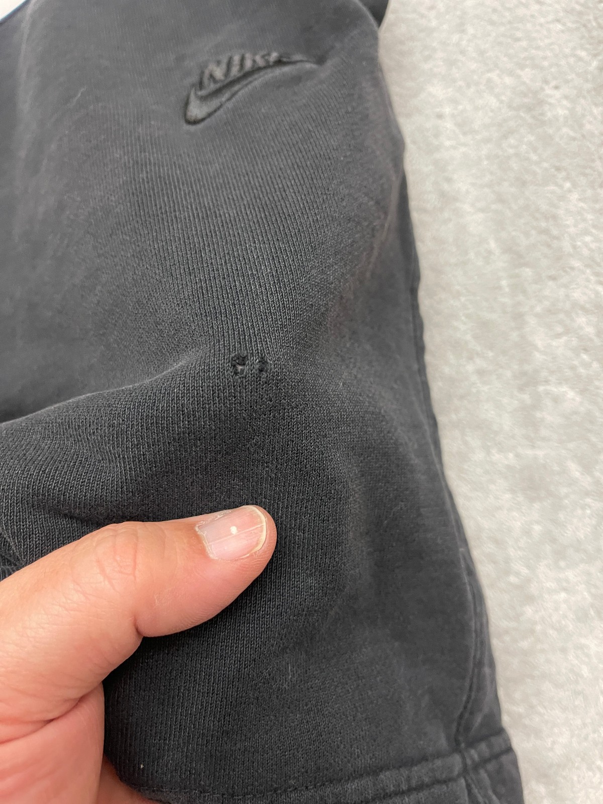 Nike Sportswear HBR Swoosh Fleece Shorts Black White Big Logo Men’s Size XL See pics for measurements, and condition. All offers considered! Small Hole see pics.