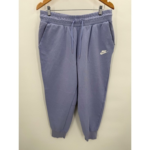 Very small blemish on front as pictured. Nike women's light purple Sportswear Club Fleece jogger pants. These comfortable pants feature a drawstring waistband for an adjustable fit, side pockets for convenient storage, and the iconic Nike Swoosh logo on the left thigh. The ribbed cuffs provide a secure and stylish finish. Measurements: • Waist: 34 in • Rise: 12.5 in • Inseam: 25 in Department: Unisex Adults Style: Sweatpants Type: Pants Performance/Activity: Gym & Training, Running & Jogging Product Line: Nike Nike Power Studio Leg Style: Tapered Theme: Sports Features: Pockets, Adjustable Waist Occasion: Activewear, Casual Inseam: 25 in Closure: Drawstring Waist Size: 34 in Fabric Type: Jersey Keywords: Nike joggers, women's fleece pants, athletic wear, casual pants, lounge pants, drawstring waist, pullover pants, sporty style, comfortable fit, athleisure, streetwear, activewear