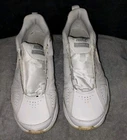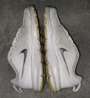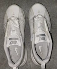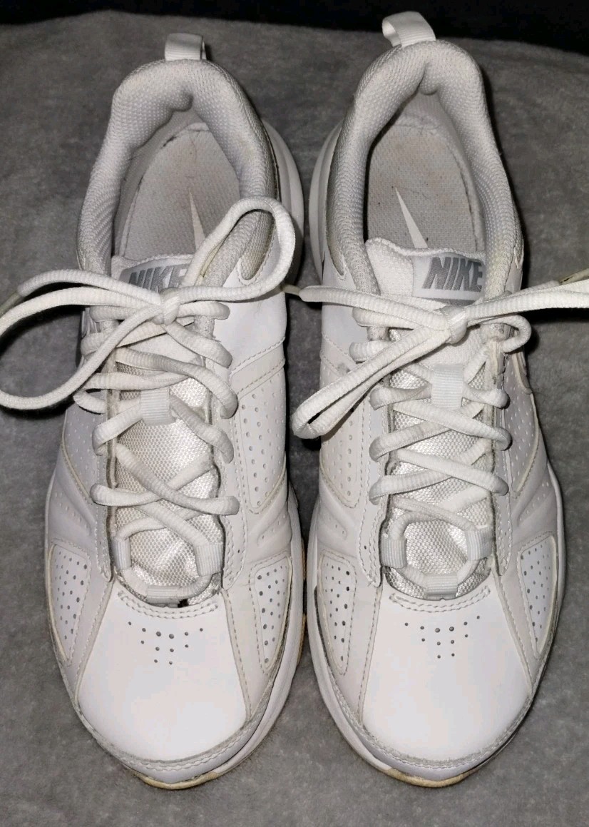 The Nike T Lite XI Athletic Shoes in Women's size 7.5 feature a sleek white and gray design, perfect for those looking to stay active and stylish. These athletic shoes are cushioned, lightweight, and breathable, providing comfort and performance for activities like walking. Made with leather upper material, they offer a standard shoe width for a comfortable fit. With the iconic Nike brand and a solid pattern, these sneakers are a great choice for women striving to stay tuned and on-top of their fitness game.
