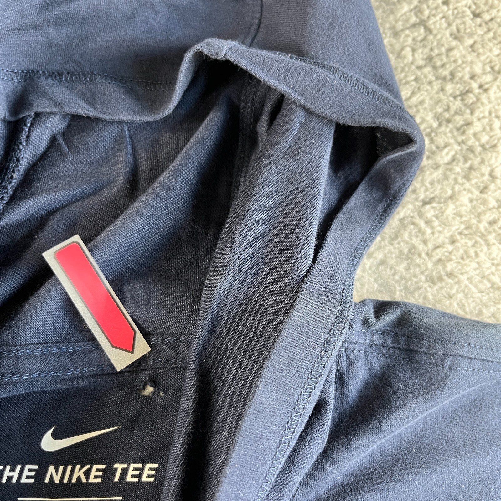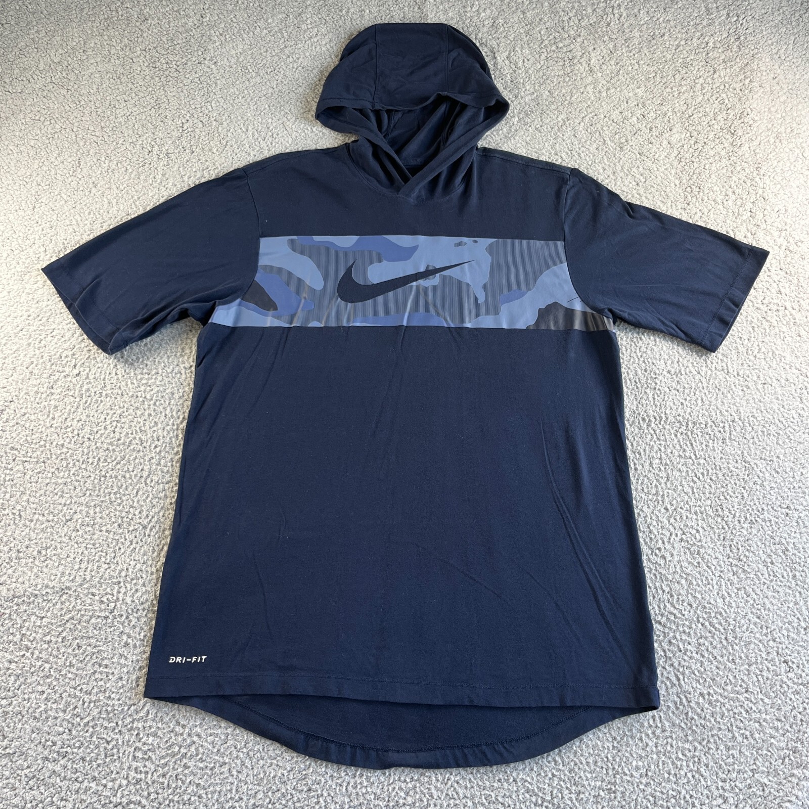 Nike T Shirt Mens Large Blue The Nike Tee Hooded Center Swoosh Outdoor Sports Condition: Pre-owned. A hole on the rear side just under the hood shown in photos. Good condition otherwise. Please see all photos for condition and measurements. Please let us know if you have any questions. Thanks for shopping with us.