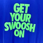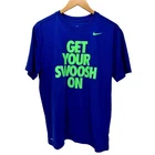 Nike T-Shirt Mens Large GET YOUR SWOOSH ON Blue Short Sleeve Dri Fit Tee Very good condition, see all pictures for views. •Pit to pit: 20" •Shoulder to hem: 29" Ships out same day or next open postal day. Thank you for your purchase, we appreciate you!